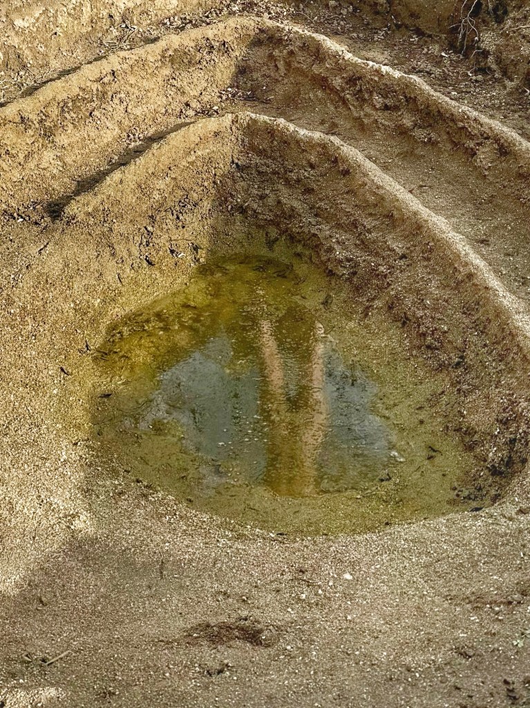 Referencing feminist art histories — from Judy Chicago to Carolee Schneemann and beyond — Coño-Charca does not reproduce iconography but relocates it into lived territory. In the rural setting of El Telart, the gesture acquires additional density: it is not only representation, but land intervention; not only metaphor, but excavation.